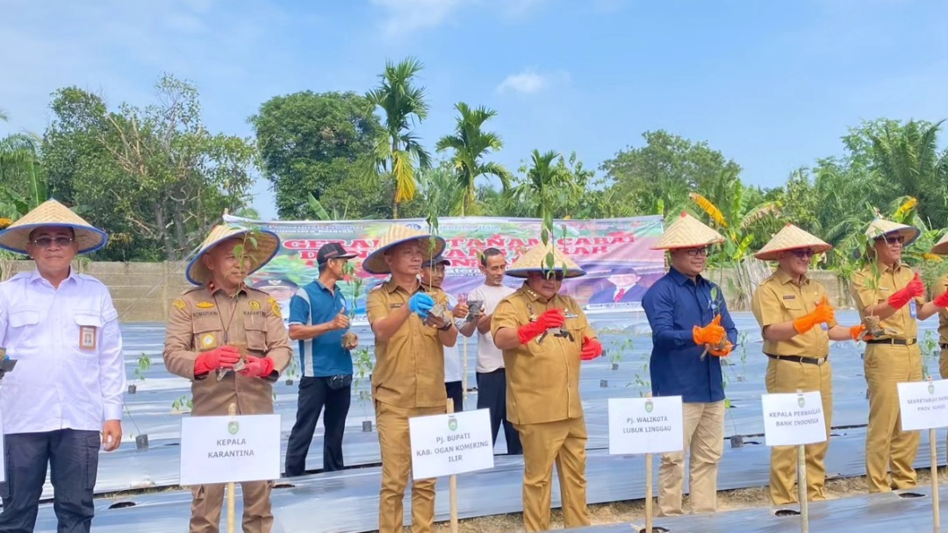 Sesditjen PSP, Dr. Hermanto, MP. bersama Kepala BSIP Sumsel, Dr. Suharyanto, SP, MP., Koordinator fungsional PSP Dinas Pertanian TPH Provinsi Sumsel, dan PIC Kabupaten Muara Enim meninjau lokasi Opla di Kecamatan Muara Belida, Kabupaten Muara Enim.