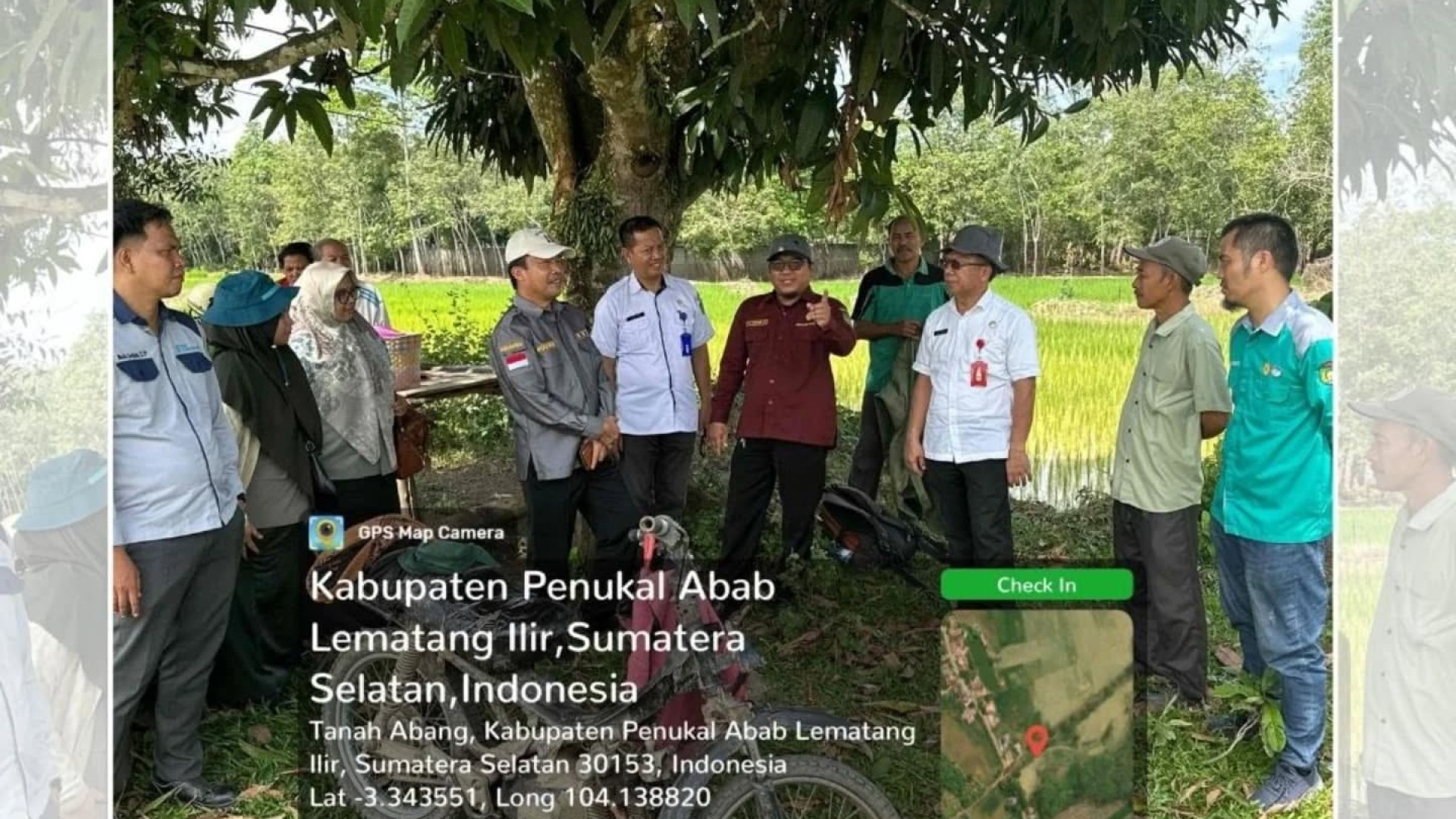 Tim BRMP Sumsel bersama Kabid sarana prasarana dan penyuluhan serta PPL Kota Palembang meninjau pertanaman padi di lahan lebak tengahan di Desa Pulokerto Gandus.