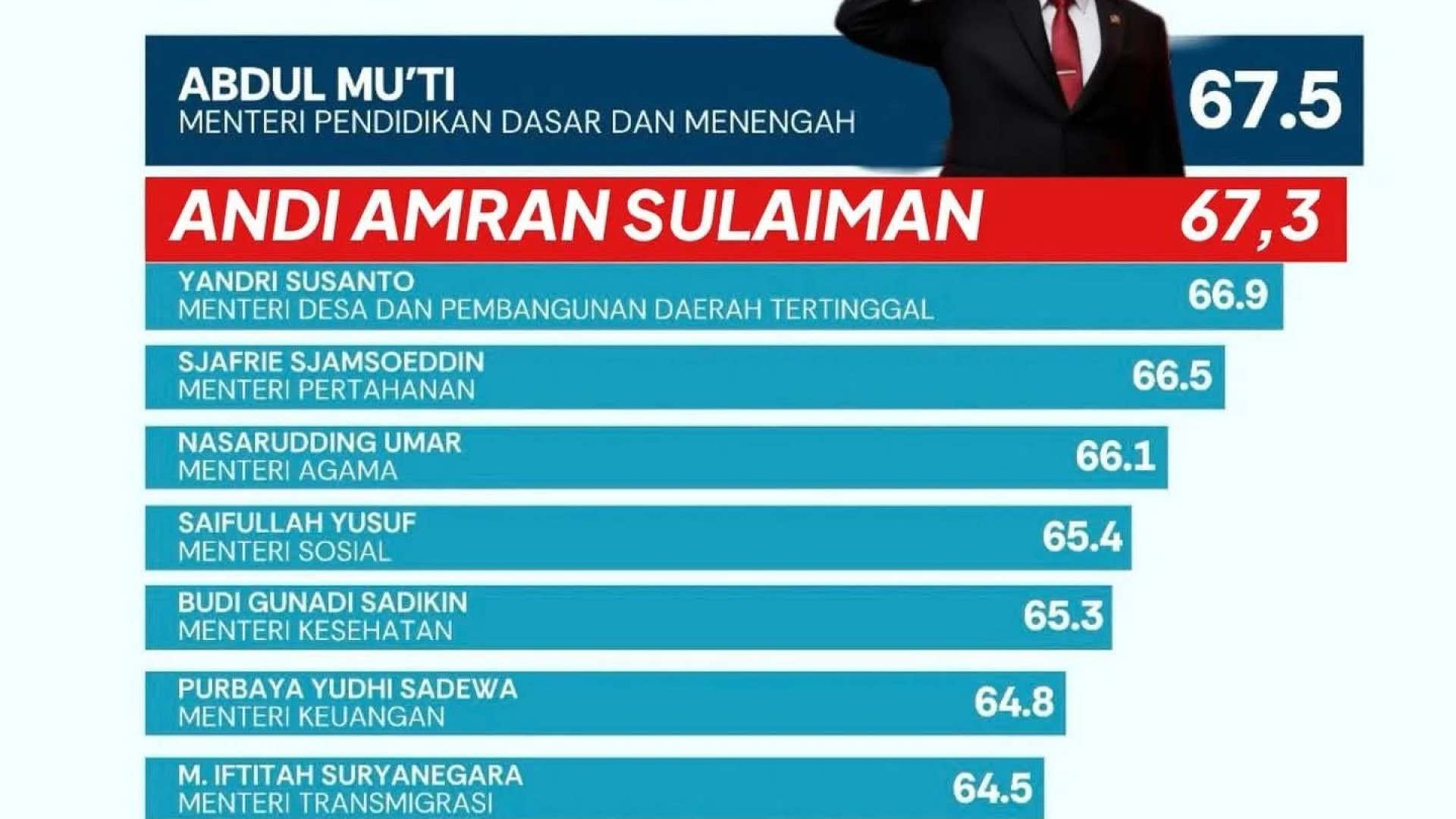 Hasil survei SPIN terkait tingkat kepuasan publik terhadap kinerja para menteri